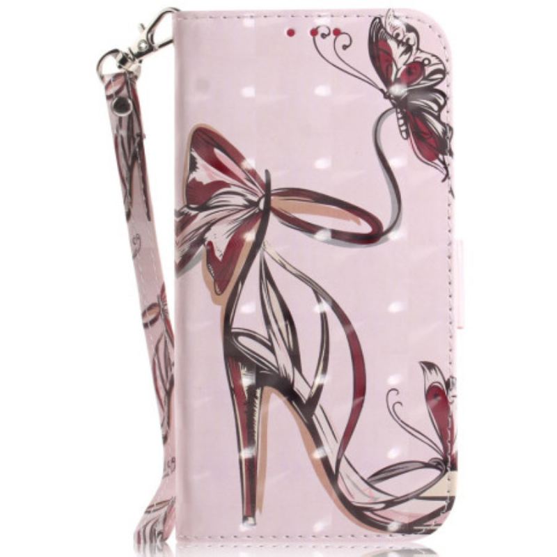 Pogledajte Našu Torbicu Za Novčanik Motorola Edge 50 Ultra 5G S Elegantnim Dizajnom Na Visokim Petama S Motivom Leptira.