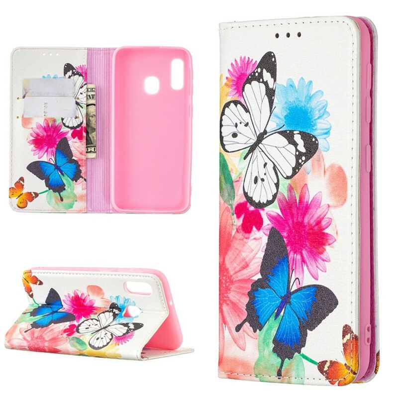 Flip Futrola Samsung Galaxy A20e Kožna Futrola Šareni Leptiri