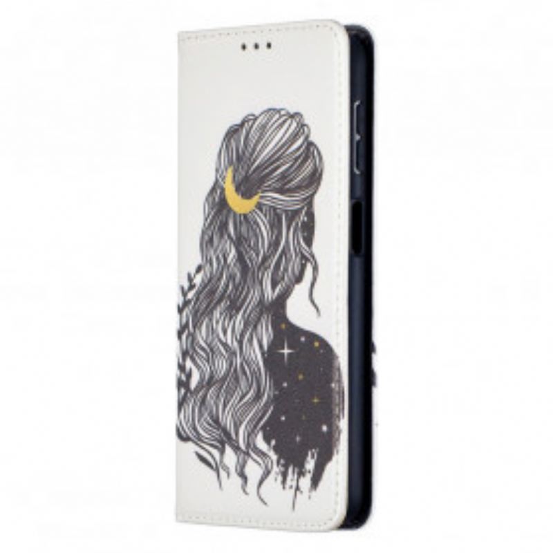 Zaštitite Cijeli Svoj Samsung Galaxy A32 5G Ovom Preklopnom Maskom Ukrašenom Mladom Djevojkom Lijepe Kose.