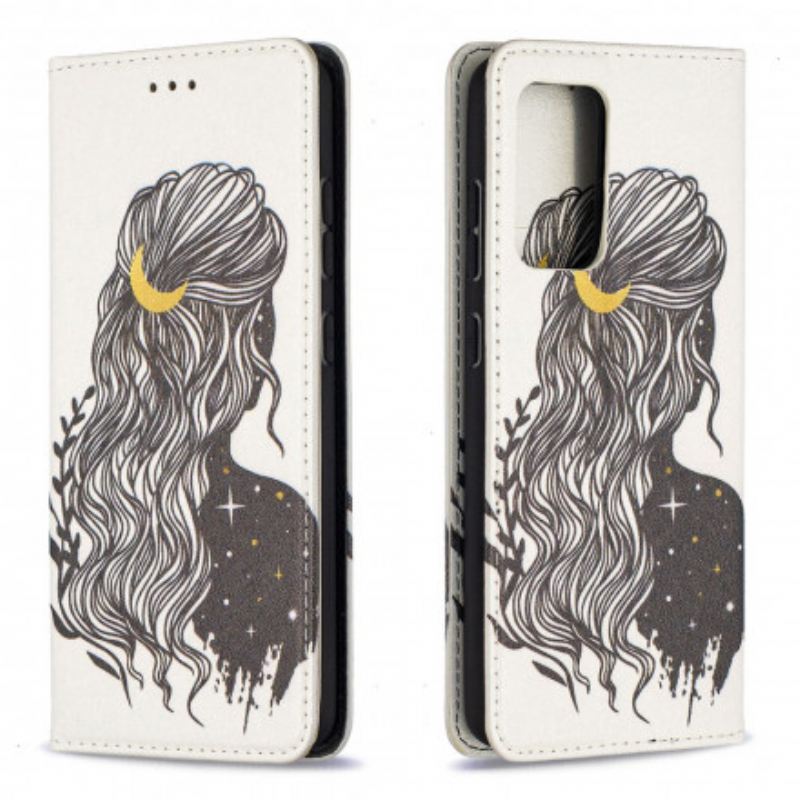 Zaštitite Cijeli Svoj Samsung Galaxy A52 4G / A52 5G / A52S 5G Ovom Preklopnom Maskom Ukrašenom Mladom Djevojkom Lijepe Kose.