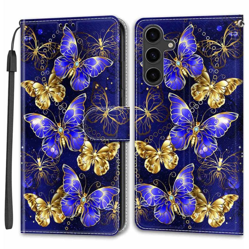 Flip Futrola Samsung Galaxy S24 5g Maskice Za Mobitele Zlatni I Plavi Leptiri S Remenom