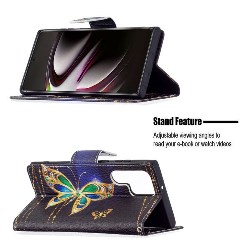 Zaštitite Svoj Samsung Galaxy S22 Ultra 5G Ovom Maskom Golden Butterflies Koja Daje Jedinstveni Stil Vašem Mobilnom Telefonu.