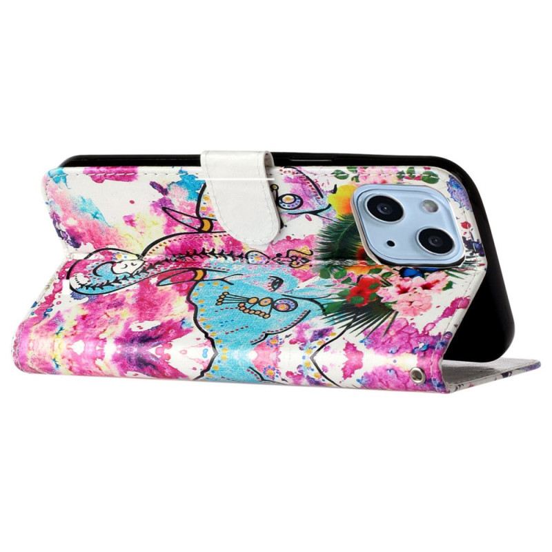 Kožna Futrola iPhone 15 Plus Akvarel Slon S Uzicom