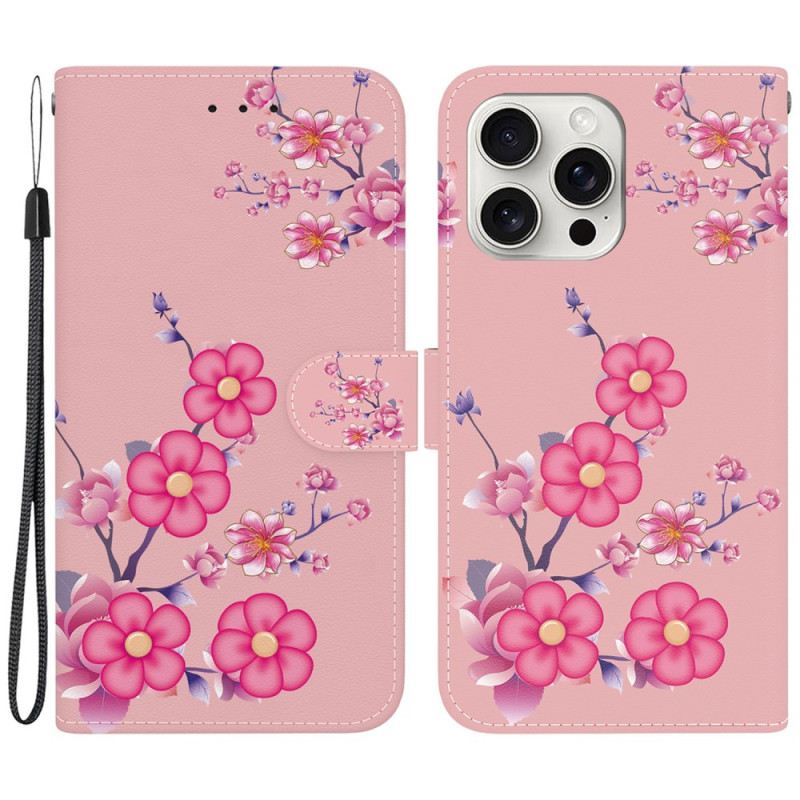 Kožna Futrola iPhone 16 Pro Sakura Uzorak S Remenom