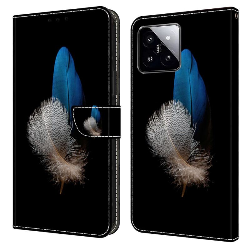 Naša Futrola Ukrašena S Dva Perja Za Xiaomi 14 Ima Ispis 3D Uzorka I Držač Za Novčanik.