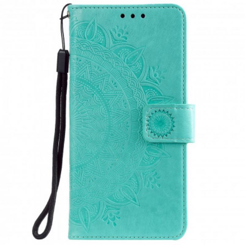 Veličanstvena Maska Za Xiaomi Redmi 10 S Mandala Dizajnom Sunca Koja Također Služi Kao Novčanik I Potpora Uz Remenje.