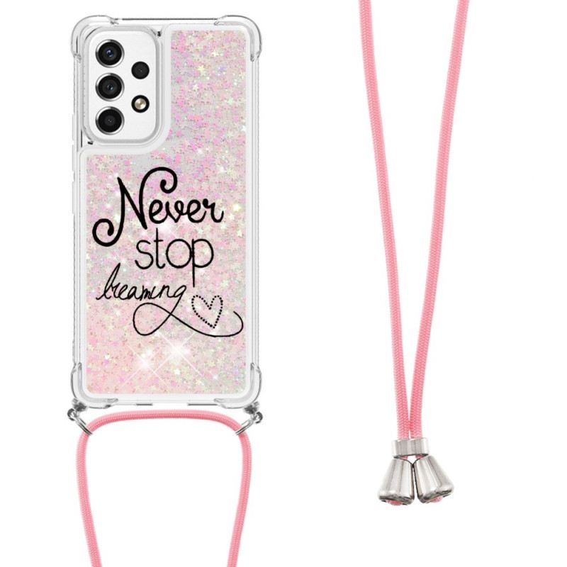 Vaš Samsung Galaxy A53 5G Prekrasno Je Zaštićen Ovom Svjetlucavo Ukrašenom Never Stop Dreaming Torbicom S Vezicom.