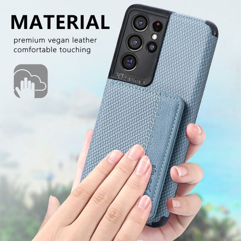 Zaštitite Svoj Samsung Galaxy S21 Ultra 5G Ovom Rfid Maskom Od Umjetne Kože S Teksturom Koja Ima Postolje Koje Služi I Kao Držač Kartice.
