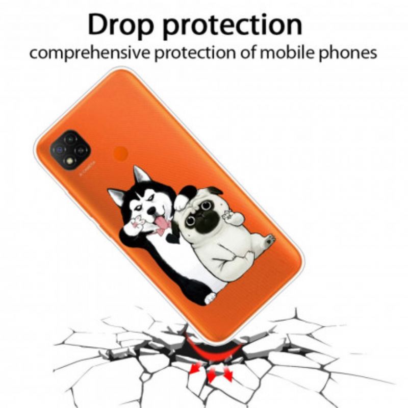 Smiješni Psi Na Prozirnoj Silikonskoj Maski Za Zaštitu Vašeg Xiaomi Redmi 9C Na Zabavan I Osoban Način.